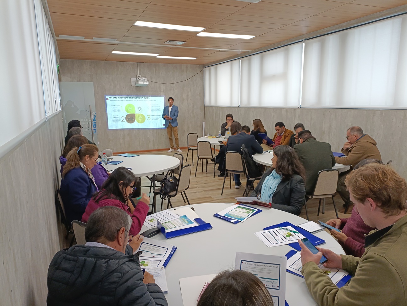 La actividad se inició con la exposición del Mg. José Miguel Guzmán, Responsable del Programa Académico Investigación Pedagógica Aplicada de la UGIP de la Universidad de La Serena, quien expuso los objetivos y contexto de la jornada de Fortalecimiento Rural. Posteriormente, se conformaron mesas de trabajo participativo con el fin de generar una discusión en torno a fenómenos que están presentes en la educación rural, además de los compromisos de los participantes en torno a esta temática. Finalmente, se realizó una plenaria, en la cual se expusieron las conclusiones del trabajo efectuado.