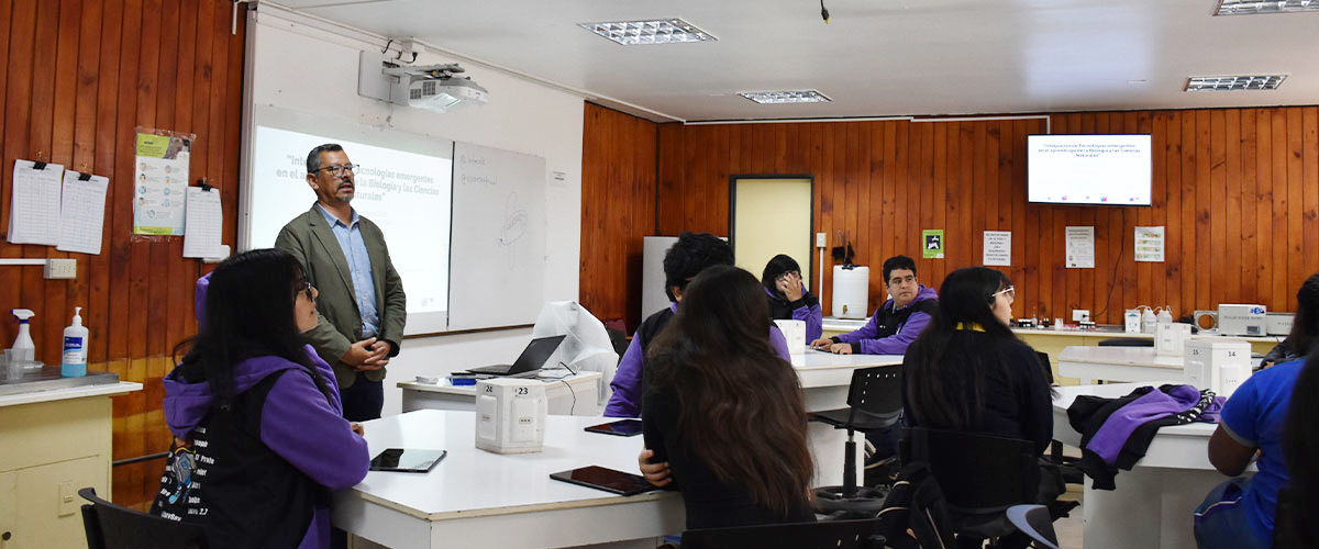 El académico del Departamento de Biología y director del laboratorio LIITEC-ULS, Francisco López, llevó a cabo una dinámica de clases que acercó a los estudiantes a la vida universitaria y además expuso la realidad aumentada como instrumento de enseñanza de los contenidos y destacó la importancia de crear instancias como estas en donde se acerque a los estudiantes a la docencia, y en ese sentido afirmó que “la educación es fundamental para un país como el nuestro y estos jóvenes tienen que llevarse la convicción de que la Universidad de La Serena es un lugar para formarse profesionalmente como docente”.